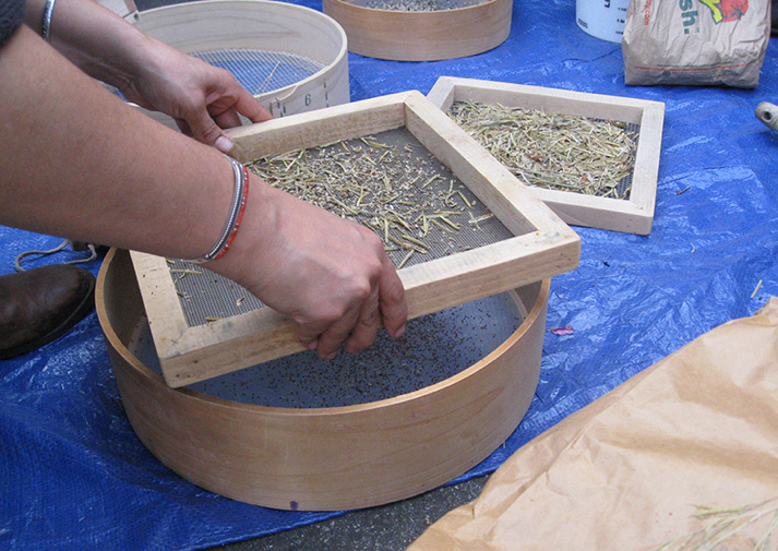 A variety of processing techniques are used, depending on the seeds' size, volume, and weight relative to the chaff. You can be creative and experiment with different techniques and equipment to suit your own circumstances.